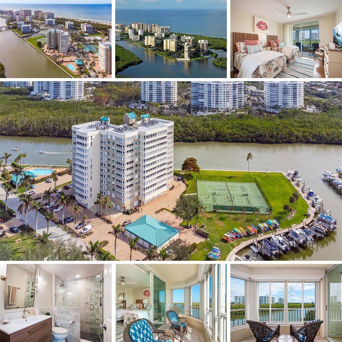 STUNNING MOVE-IN-READY CONDO VANDERBILT BEACH - NORTH NAPLES! This exclusive Move-In Ready Two-Bedroom End-Unit Condominium with Stunning Gulf of Mexico, Vanderbilt Channel, and Marina Views offers a magnificent renovation with nearly $100K in Upgrades throughout, including a fabulous remodeled chef's kitchen with high-end stainless appliances opening to an expansive great room and dining room, completely remodeled baths featuring elegant marble tile, and so much more! To accommodate your desire for magnificent year-round views, from inspiring sunrises to beautiful sunsets, the privacy of this end-unit with its expansive wraparound balcony and windows provides a glow of natural light, creating an open and airy feel, welcoming you home to your paradise. Located in the most coveted 01 stack in the highly desirable Gulf Breeze condominiums with Low HOA Fees, Unit 401 offers an unparalleled Naples lifestyle within walking distance of Vanderbilt Beach and Delnor Wiggins Pass and dining opportunities at famous Naples restaurants right on the beach. Perched on the fourth floor, your new home boasts breathtaking views of the Vanderbilt Channel where you can watch dolphins swim, the alluring blue waters of the Gulf of Mexico, and the beautifully illuminated marina at night. For added convenience, the unit features a Murphy bed, providing extra sleeping accommodations and making it ideal for hosting guests. Just a three-minute stroll to one of Florida’s most beautiful beaches, this property also includes access to exceptional amenities with a community pool, pickleball, and tennis courts just for the homeowners in the Gulf Breeze community. Being offered turnkey and fully furnished, this one-of-a-kind home must be seen in person to appreciate its charm, beauty, and unique features truly. Schedule your private showing today and experience the best of Naples living!